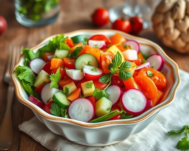 - Surówka biskupia – ta mieszanka różnych warzyw, często wzbogacona cebulą, ogórkami i papryką, oferuje wyrazisty smak, który świetnie współgra z mięsnymi daniami,